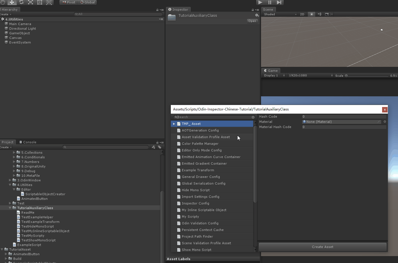 本工具是基于Odin,为创建ScriptableObject对应的asset文件制作的菜单,即开即用