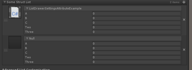 [ListDrawerSettings(OnBeginListElementGUI = "BeginDrawListElement", OnEndListElementGUI = "EndDrawListElement")]