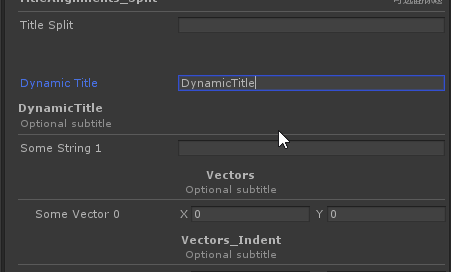 [TitleGroup("TitleAlignments_Split", "可选副标题", alignment: TitleAlignments.Split)]