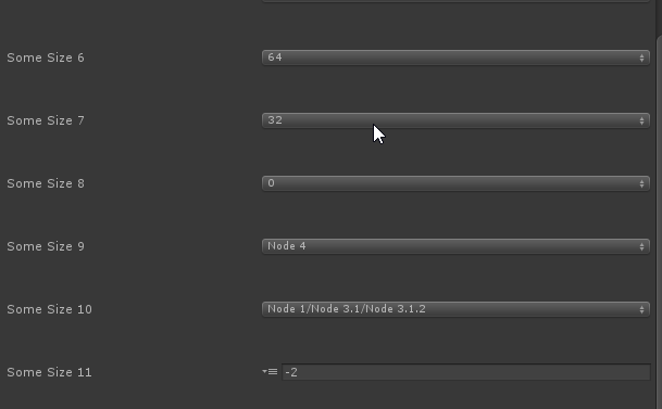 private IEnumerable TreeViewOfInts = new ValueDropdownList<int>()