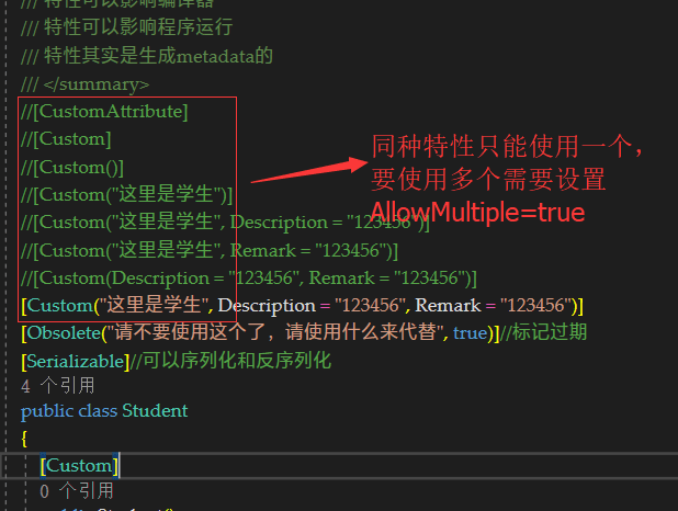 /// AllowMultiple(说明这个特性在同一个元素上使用的次数,默认一个元素只能标记一种特性,但可以多种特性并存)