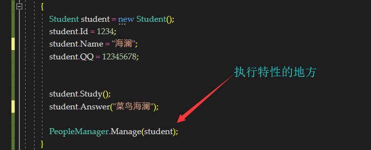 在刚刚的student类中我们在很多元素上标记了特性,下面我要让这些特性发挥作用