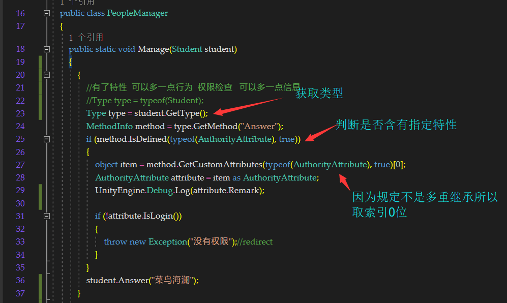 if (method.IsDefined(typeof(CustomAttribute), true))//检测对应的方法是否含有指定的特性