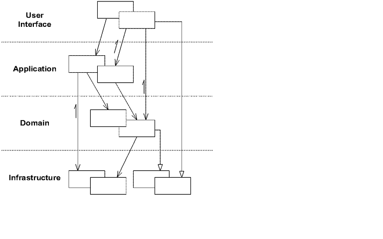 其依赖方向为上层依赖下层且为单向,在使用时,并非使用严格分层架构,而是使用松散分层架构。也就是说,上层可以直接使用其下面的所有层级,并非仅仅下面的一层。