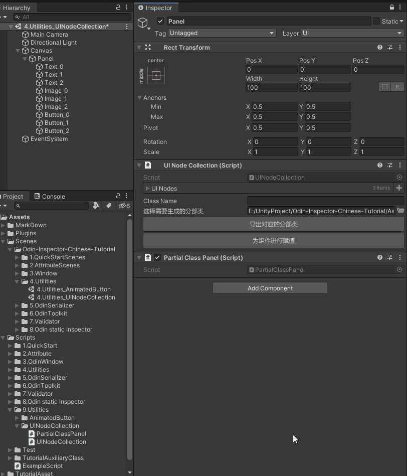 本工具是基于Odin制作,方便查找对应面板的UGUI组件,并提供对应脚本创建、组件赋值、常规冲突检测等机制。